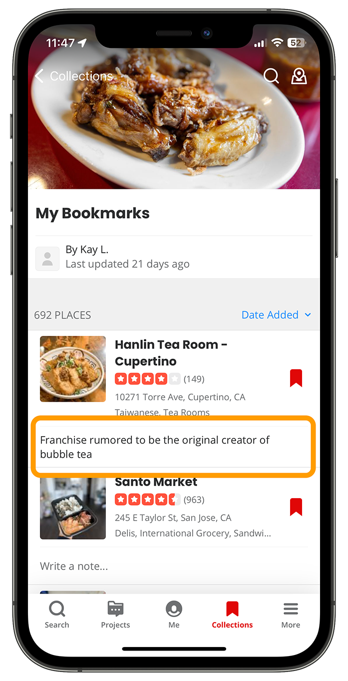 One such example is Yelp's popular "Collection" feature, which lets users save and share lists of favorite places. To stay competitive, it must provide a more personalized experience than Google's generic "Saved" lists.