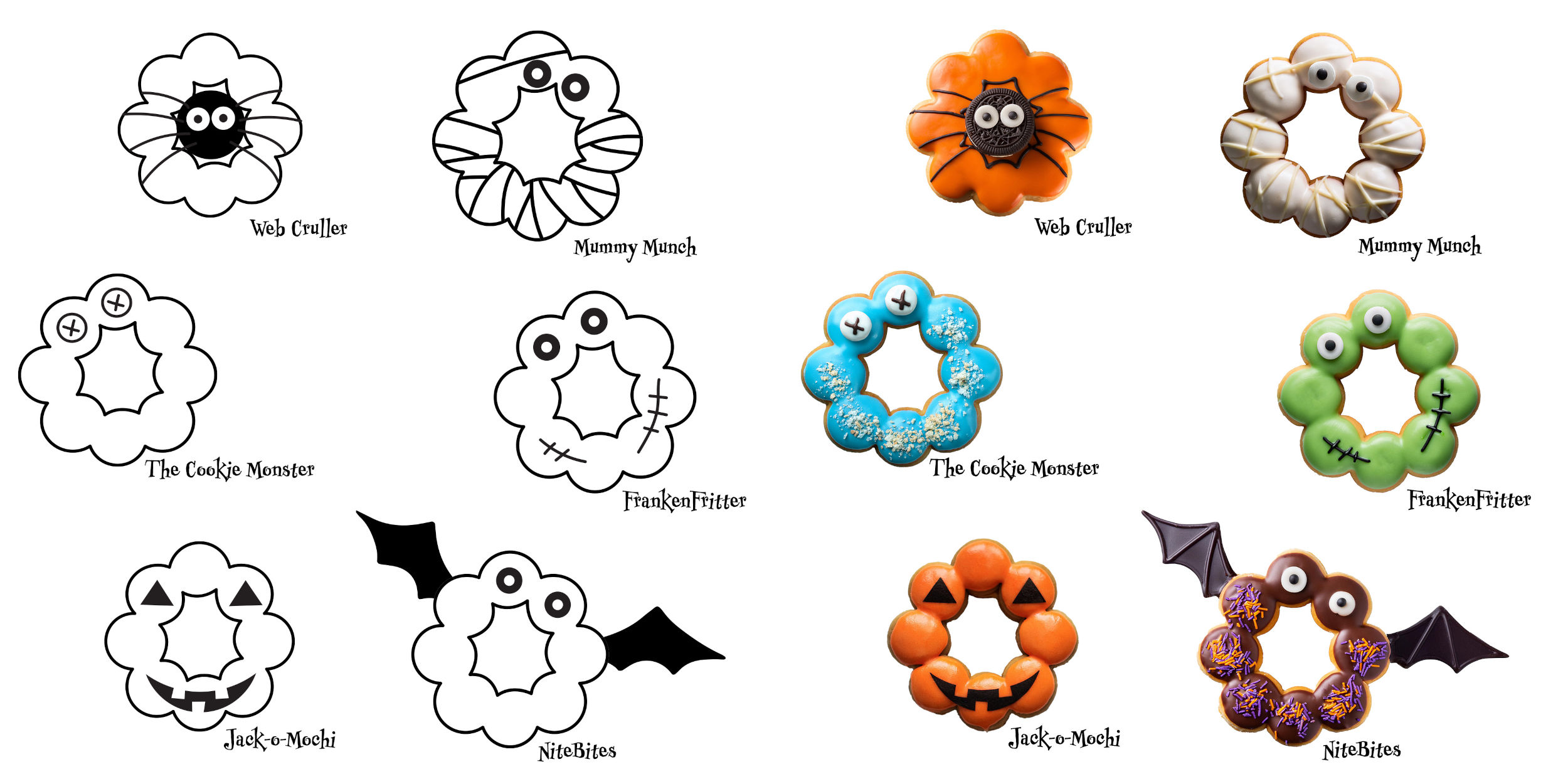 • Web Cruller - Orange frosting with a black Oreo cookie spider in the center, complete with candy eyes and chocolate legs